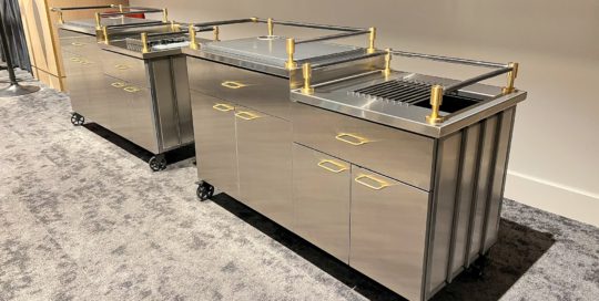Crash2024-09-27T06:32:21+00:00FAHRENHEIT CUSTOM FLAMBE CART After the Bourbon cart delivery garnered the enjoyment of many customers it was time to engineer and fabricate the next table side service piece requested by our friends at Fahrenheit. This time would be a Flambé cart outfitted with high output cooktops to provide a high quality [...]